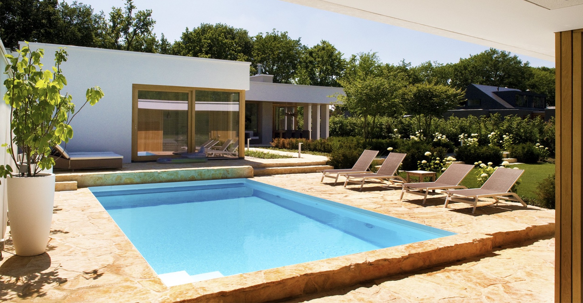 Wat is je eerste gedachte als je de bungalow ziet? Precies. Maar je bent niet in Zuid-Europa, je bent in Brabant. Samen met architectenbureau Willemse/NU hebben we deze mooie, lichte woning ontworpen.