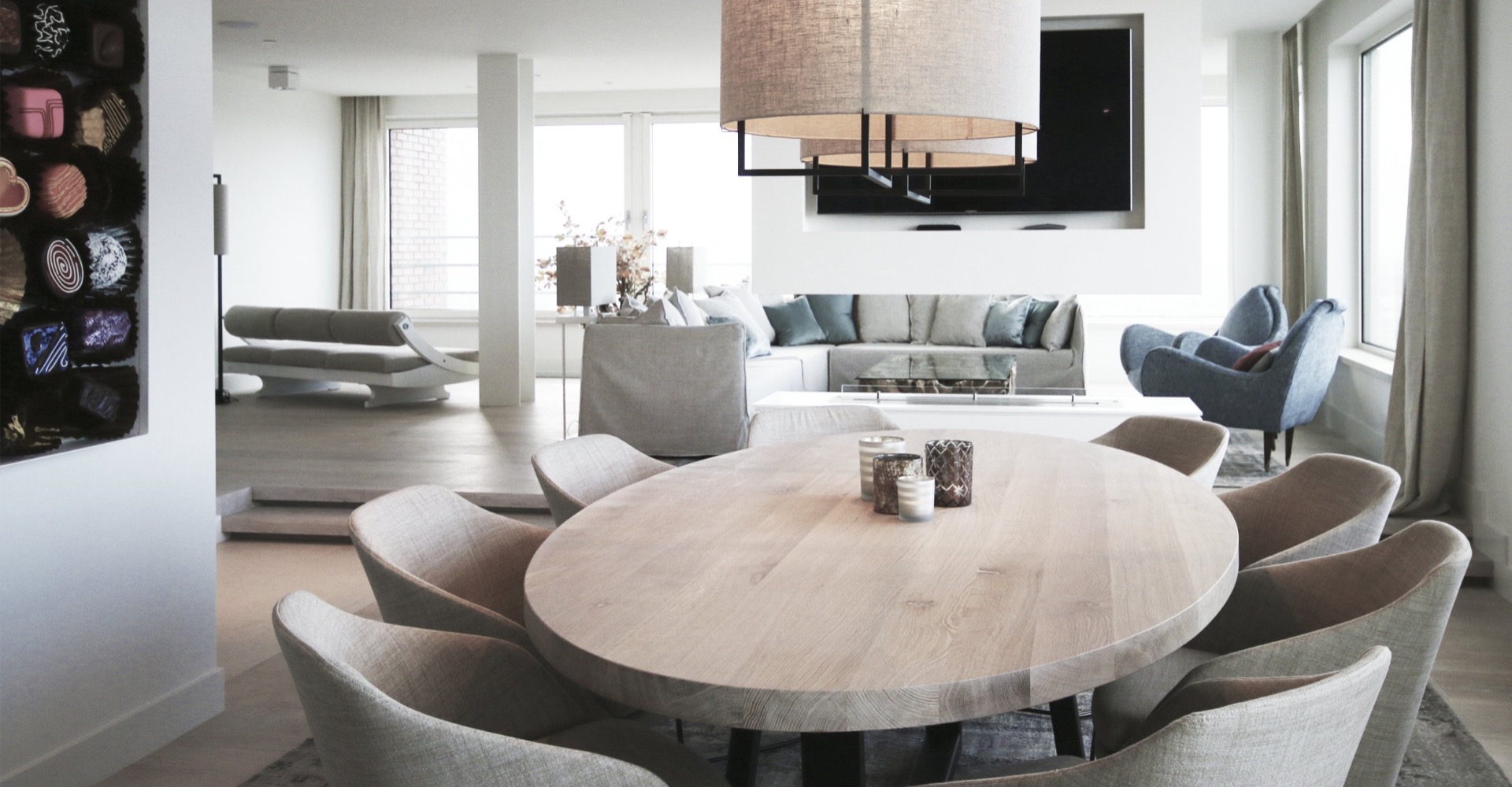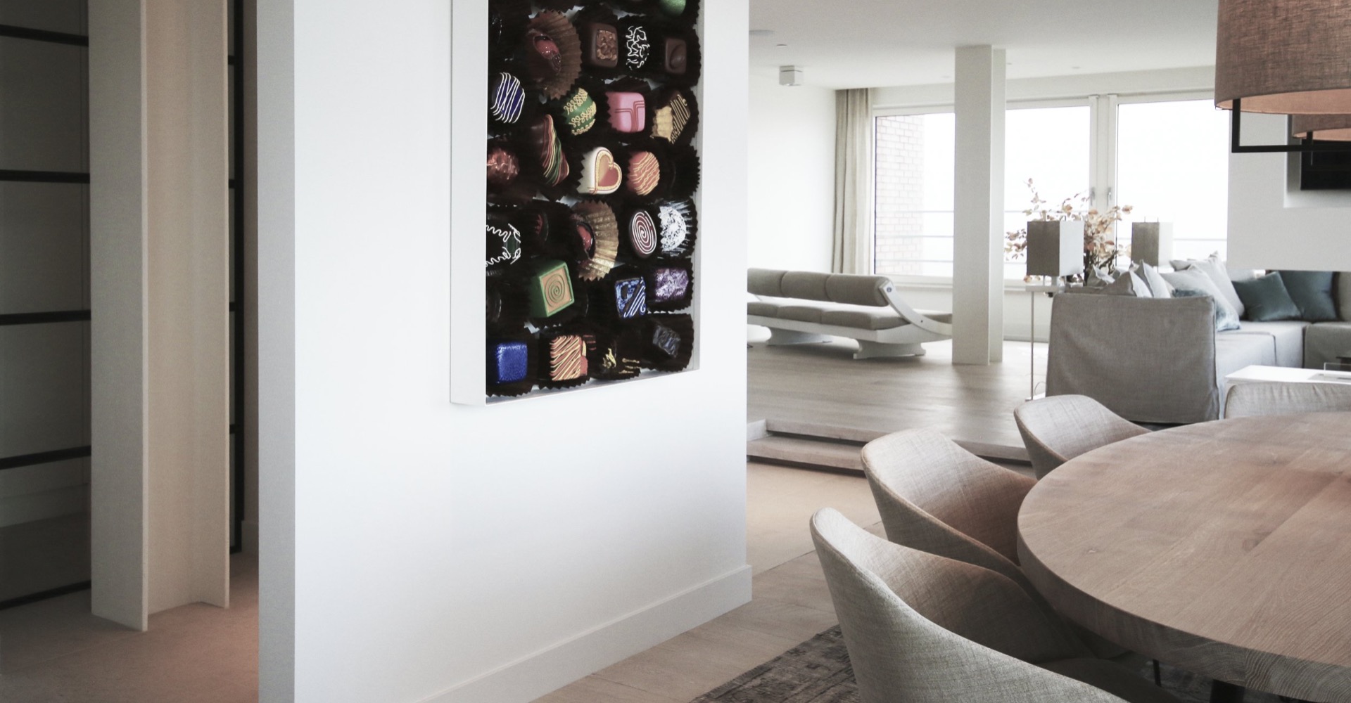 En heel veel ruimte, maar liefst 245 m2 ruimte. We hebben ons volop laten inspireren door de rust van de hoogte, het comfort van de ruimte en de kunsten met in de details een leuke knipoog naar de Rotterdamse haven. Maar het mooiste schilderij zie je natuurlijk als je naar buiten kijkt. Dat is pas echt onbetaalbaar.