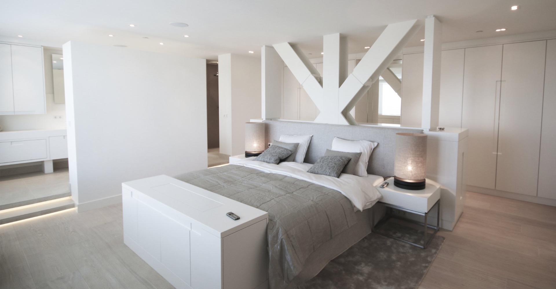 Wij zijn gek op fantastische uitzichten. Als je de kans krijgt om het penthouse van de Montevideotoren in Rotterdam te realiseren dan vraag je niet om bedenktijd. Doen. We kregen een casco-appartement om mee te werken. Een blanco vel papier als het ware.