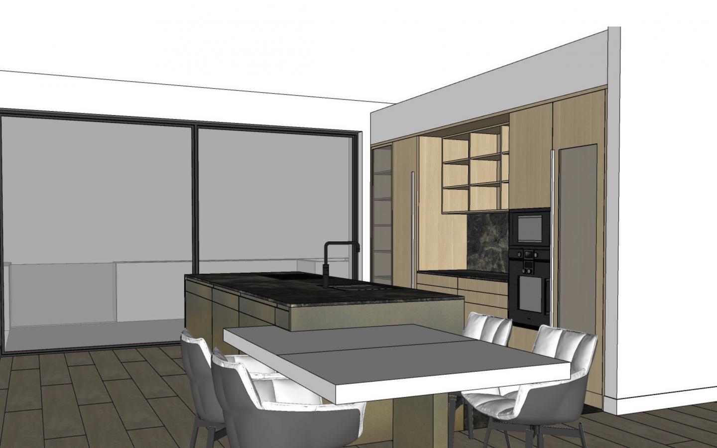 Voor het appartement aan het Valeriusplein in Amsterdam was de uitdaging meteen duidelijk; hoe kunnen we de hoeveelheid aan gewenste functies in de enigszins beperkte ruimte realiseren? Bovendien woont betreffende klant in het buitenland, daarom hebben we elk ontwerp en elke wijziging meteen in 3D gemaakt. Gezien de afstand met de klant communiceerde dat sneller en makkelijker.
